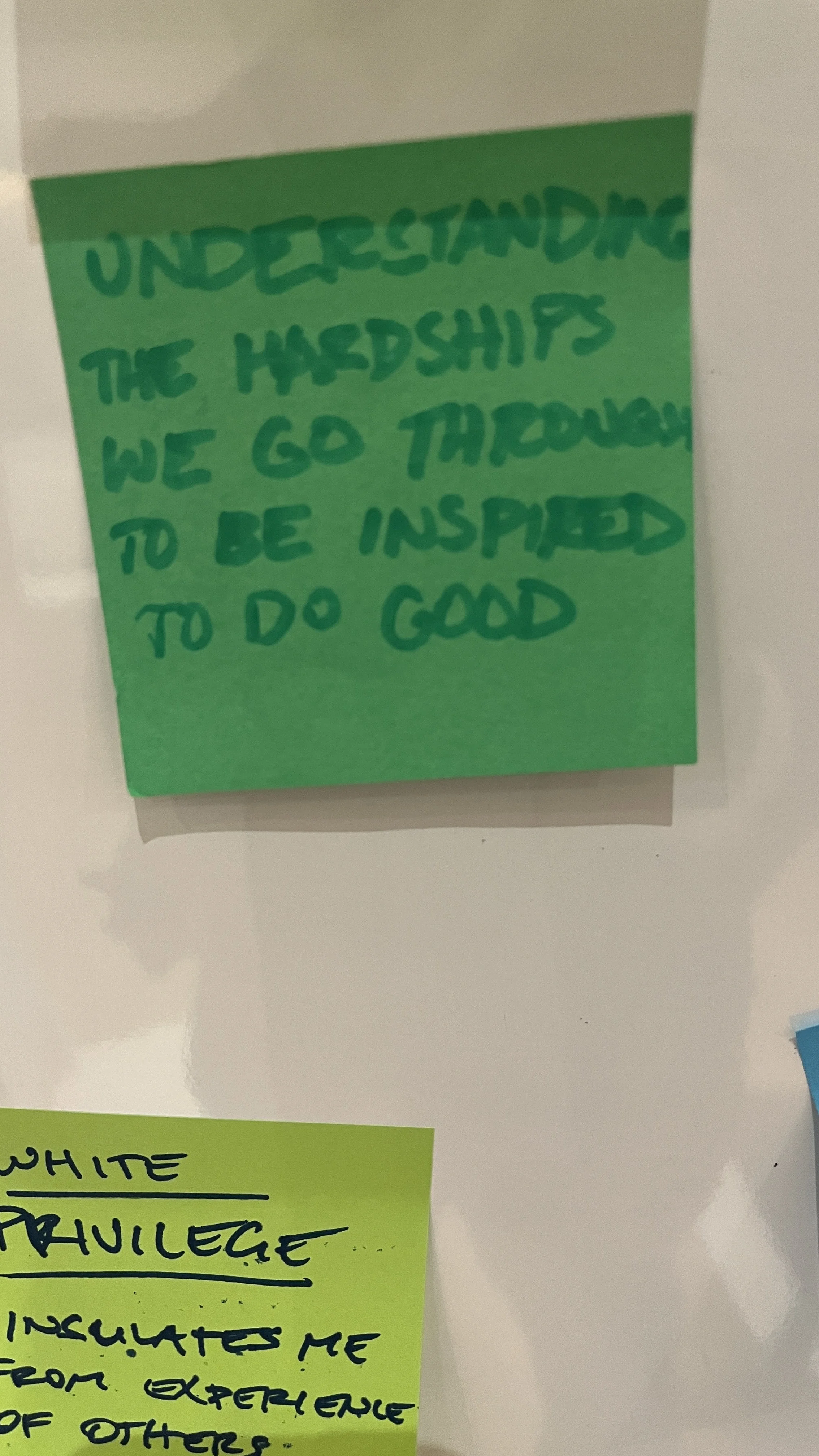 Nine individuals were available at the conclusion of the workshops to start the process of creating an autobiographical performance piece. Beginning in late January of 2022, participants met in both virtual and hybrid settings once a week, facilitated by AJSC collaborators. Through prompts, storytelling, improvisation, and written submissions, we developed a script that focuses on incarceration and its effects, early trauma, post-release issues, and the personal histories and events that lead to individuals becoming justice impacted.